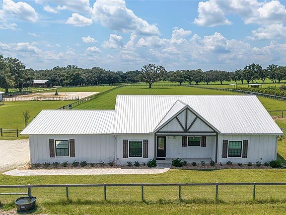 Welcome to this charming 10.40-acre equestrian retreat in Williston, Florida, where functionality meets farmhouse charm. From the moment you arrive at the gated entrance—complete with elegant stone columns—you’ll feel the pride of ownership and thoughtful planning that went into every inch of this stunning property. A long driveway leads past lush fenced pastures to the heart of the farm, where a 2022-built center aisle horse barn and a modern farmhouse-style home await. The 48' x 48' center aisle barn features 8 stalls, 4 with private turnout pens and end gates for easy access to the pastures. There’s a wash rack, two flexible open bays that can become additional stalls or hay storage, and a 12' x 24' insulated, air-conditioned tack room with a 5' roll-up door—ideal for moving your tack and feed in comfort. Rubber flooring throughout the aisle, stalls, and tack room adds to the functionality and ease of maintenance. For the equipment or hobby enthusiast, a second 40' x 84' pole barn (also built in 2022) offers five open bays with an additional 12' x 60' overhang—perfect for tractors, trailers, or RVs. A 24' x 40' enclosed garage with two large roll-up doors provides space for a workshop, toy storage, or additional farm use. In addition, you have 200-amp electric service to the home and both barns, plus two RV hook-ups (one 30amp & one 50amp) and dual electric meters, this property is designed for versatility. At the top of the farm sits the quaint 3-bedroom, 2-bath home, built in 2022 and overflowing with charm. The farmhouse kitchen features stainless steel appliances, glass backsplash, a center island, and bar seating that opens to the spacious living area. A retractable glass wall extends your living space onto the screened lanai, which features a heated saltwater pool (added 2023), all facing west for breathtaking sunsets after a long day. This split floor plan offers a private master suite, while the 3rd bedroom, complete with sliding barn doors and Murphy Bed doubles as an office providing work-from-home potential. Another great feature of the home is a 24' x 36' attached 3-car carport making everyday access convenient rain or shine. Enjoy panoramic views of your horses from nearly every window. Four large pastures surround the home, and the fifth pasture features a riding arena, ideal for any discipline. Tucked away in peaceful countryside yet still just 6 miles to Williston, this property offers the best of both worlds. You're also 20 minutes to the HITS showgrounds, 25 minutes to the World Equestrian Center, 35 minutes to Gainesville, 30 minutes to Ocala, and less than an hour to the Gulf of Mexico for beachside escapes and fishing adventures. Whether you're training, relaxing, or entertaining, this turn-key farm has everything you need to live the equestrian dream. The sunsets here are unforgettable—and so is the opportunity.