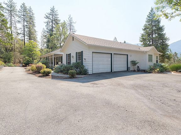 Private, gated, single-level home in the heart of Southern Oregon's lush countryside. Nestled in 8+ acres and just a stroll from Fish Hatchery Park, this lovely 3-bed, 2.5-bath home spans 2,500+sqft. Open-concept layout flows effortlessly from the front door into the kitchen and family room addition, where floor-to-ceiling windows frame panoramic views of surrounding mountains. Landscaping is low-maintenance, w/ drip irrigation & sprinkler system. Recent, extensive fire mitigation work and fire-resistant siding adds peace of mind while a whole-house propane generator preserves comfort and continuity. A detached shop building offers a bonus garage bay & ample storage. Rear gate leads to a large parking area with space for your RV, boat, or trailer. An inner fence surrounds raised garden beds. Built in 1993 and well maintained overall, the kitchen and bathrooms are dated but easy to update to your taste.