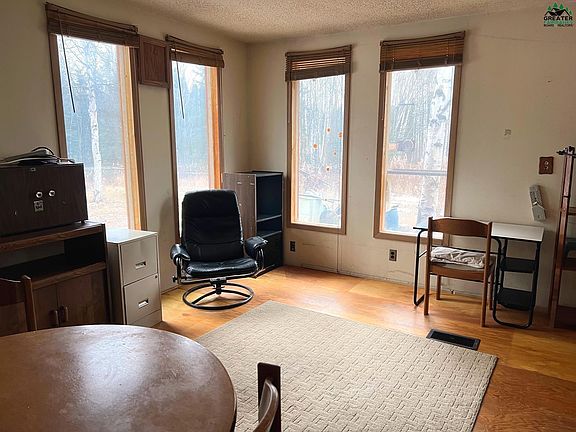 In Clear tucked in right across the street from Clear Sky Lodge, this home sits on approximately 5 acres of partially wooded space. The house was built in 1978 and finished in 1998. The main floor above the basement has two bedrooms, living room and dining area with kitchen and a bathroom with laundry. Downstairs in the basement there is a full living room complete with a small room/office and a half-bath as well as a full kitchen! Above the main floor is the attic with additional living space that is unfinished and has its own private entrance as well. The home is heated with a forced air furnace and has its own well and septic. On the property is also a large greenhouse and a big garden area. There's an old, detached garage on the property as well that was destroyed when it collapsed from snow load as well as various items left on the property that will go with the sale. If you're looking for a quieter place or an ideal spot close to the Clear Base, this might be a great option with plenty of acreage. Living 30 minutes from Healy, and just over an hour from Fairbanks. As-Is sale, Cash