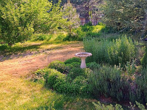 Floor-to-ceiling brick fireplaceGourmet kitchenSpacious yardRaised garden bedsKohler farmhouse-style double sinkPellet stove insertBourdain granite countertops