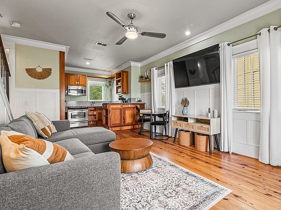 Come Home or Escape to Pirate’s Landing! Discover your fully furnished, coastal retreat with breathtaking river views from your screen porch & private balconies. This turn-key condo features heart-pine floors, crown molding, cherry cabinets, granite countertops, stainless appliances, wainscoting, vaulted ceilings, & a NEW 2025 HVAC! Resort-style amenities include a community pool, hot tub & boat landing. Ground Level: Covered parking & storage closet. Mezzanine Level: Spacious screened porch & inside laundry room w/ washer/dryer. Main Level: Open concept living area w/ gourmet kitchen, full bath, & balcony, perfect for relaxing and watching boats come into the Marina. Top Level: Primary suite, full bath, loft/sitting area & balcony. Whether you’re seeking permanent residence or a weekend escape, Pirate’s Landing offers the perfect blend of comfort, style & waterfront serenity! SEE Associated Docs for Detailed Info Sheet
