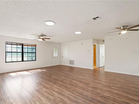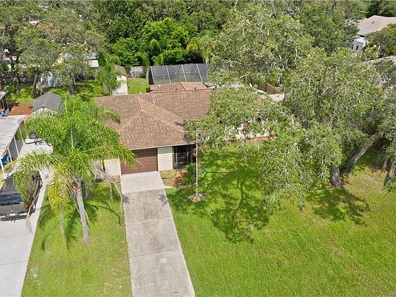This gorgeous 2 bedroom, 2 bathroom is an absolute delight! With a completely fenced yard and screened in pool and lanai, this Spring Hill home is perfect for entertaining family and friends! The home has an open concept with skylights with new covers for plenty of natural light! The kitchen features a breakfast bar and stainless steel appliances, nicely paired with a river-rock inspired backsplash and epoxy countertops. There is brand new cool-toned laminate flooring throughout the carpet-free home. Each room has a brand new fan equipped with LED lighting. Both bathrooms have new vanities, mirrors and toilets for a more modern feel. The pool is screened in and has a covered Florida Room a few steps away. Make this one yours while it lasts!