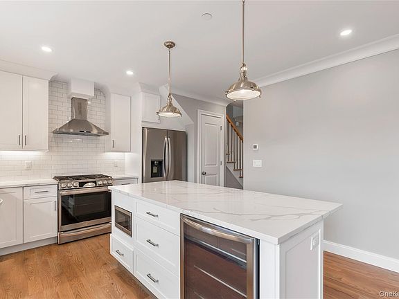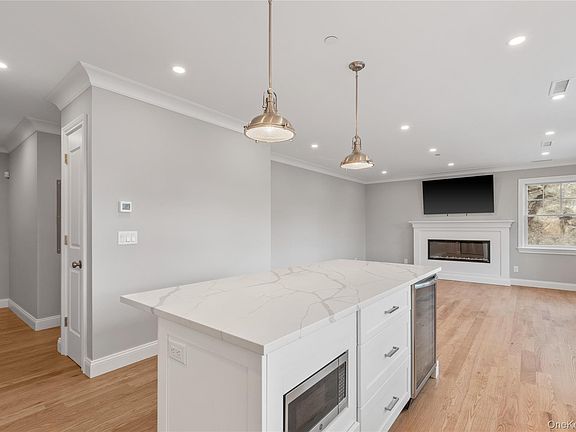 Built in 2024, this beautifully designed two-floor apartment is located less than half a mile from the Rye train station and downtown Rye, offering elevated living in a highly convenient location. The kitchen features premium appliances, quartz countertops, a wine refrigerator, and island seating, opening seamlessly into the living space with high ceilings. A built-in fireplace and mounted TV create an inviting place to relax. You will also find the first bedroom and a full bath on the main level. Upstairs, a family room opens to a private outdoor deck. Also on this floor, the spacious primary bedroom includes a stunning en-suite bath with a double vanity. The second floor also offers a conveniently located in-unit laundry. With four included TVs, this home is truly move-in ready. Just moments from downtown, enjoy dining, shopping, and an easy commute (~36 minutes to NYC), along with beaches, parks, the YMCA, arts, nature, and recreation centers. Experience Rye living at its best.