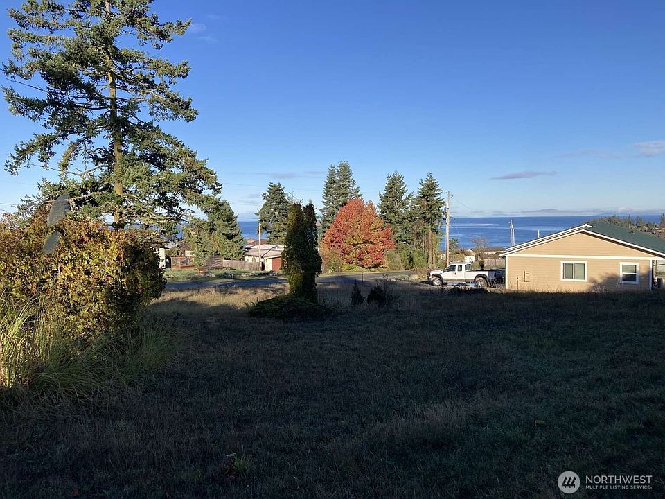 Beautiful view lot in Cape George community. With community pool, marina and shared workshop. This portion of the community allows manufactured homes making it much more affordable than building a stick built home. Septic permit issued three years ago will need to be renewed. Lot had a building on it before so power pole is there and water at lot.