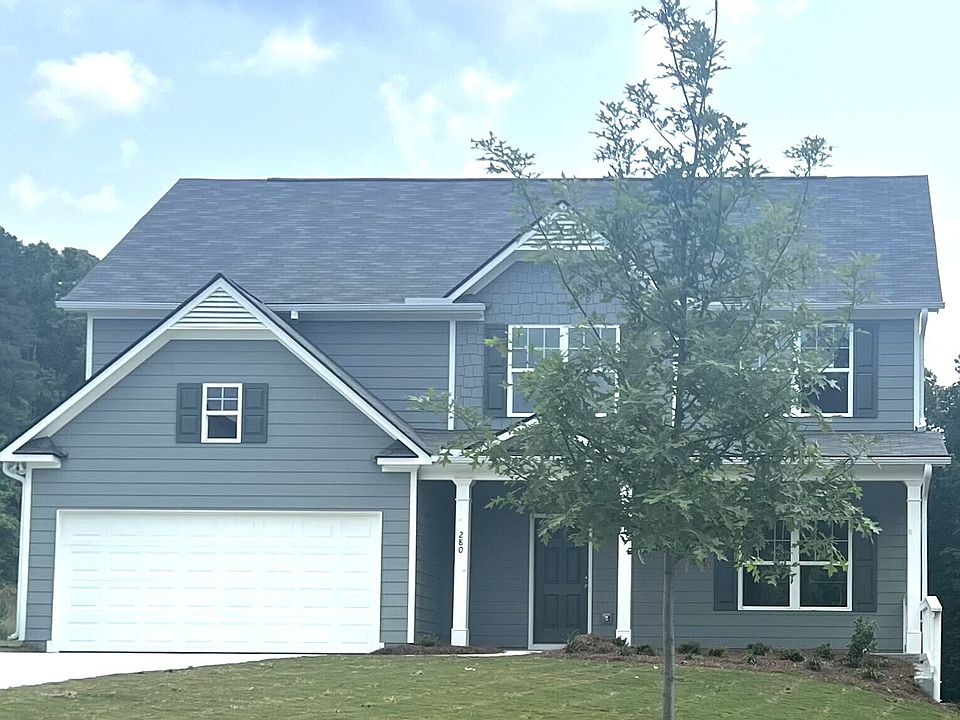 Welcome to the beautifully designed Graham Plan - a 4-bedroom, 2.5-bathroom home that perfectly blends comfort and style. This move-in ready gem features a large, cozy front porch that's perfect for relaxing mornings or quiet evenings. Inside, you'll find a warm fireplace with a sophisticated slate surround, a spacious kitchen with 36-inch Fawn cabinets topped with crown molding, and gleaming Valle Nevado granite countertops with a modern single-bowl sink. The owner's suite offers a luxurious retreat with a 42-inch fiberglass garden tub, a separate shower, and a dual-sink vanity. Outside, enjoy an oversized driveway that accommodates up to six cars and a large, private backyard-ideal for entertaining or peaceful outdoor living. This home is ready to welcome the perfect family!