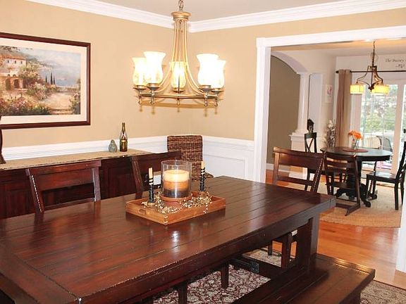 Stunning, distinguished home, better than New Construction with numerous custom amenities. Bright and full of Sunlight with Palladium Windows in the exceptional Great Room and second level bedroom. Gourmet Granite Kitchen with 2-tone granite, custom paneled cabinets, upgraded Stainless Steel Appliances including a double oven and 5-burner gas stove. This Chef's kitchen has a center island with seating and a wonderful eat-in area that accesses back deck with glass sliders. Wonderful open concept floor plan with the kitchen opening through a pillared archway to the immense Great Room with gas fireplace, coffered ceiling and medallion molding with ceiling fan.Custom installed recessed lights through every room, wainscoting, and crown moldings are present throughout the formal dining room, living room/office, kitchen and great room. Double Vanity granite sinks in both of the Full Baths with custom beveled mirrors and custom lighting added. Full walk-out basement with extra high ceilings.
