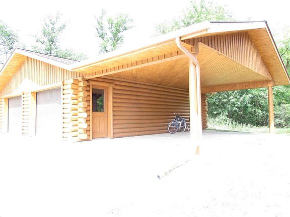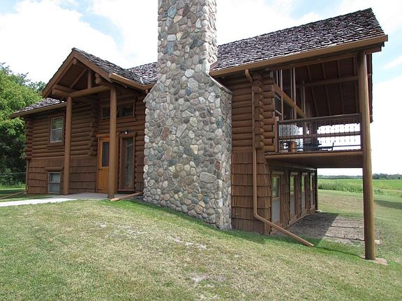 Unique and luxurious log home with 3 bedrm and 2 bath on 5 acres nestled near state land and wildlife ponds. Newly remodeled interior, open floor plan, vaulted ceilings, beautiful architecture and views off the deck. Relax in the jacuzzi tub or by one of the 2 wood burning fireplaces. Double detached garage with car port and newer 30x40 storage shed with concrete floors and paved driveway.