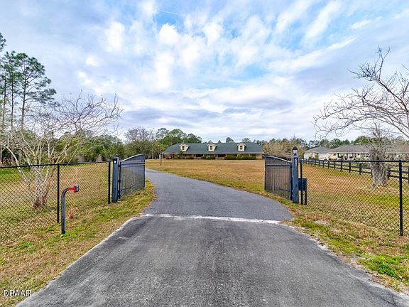 Situated on 2.72 acres, this spacious 5-bedroom, 4.5 bathroom home spans an impressive 3,722 square feet of living area. Upon arrival, you'll be greeted by the automatic gates of this fully fenced property, offering both privacy and security. Step inside to discover a beautifully appointed interior, featuring tons of open living space with a large kitchen and a beautiful coquina stone fireplace. Boasting three primary suites, each offering its own privacy and space along with 2 other bedrooms with a jack and jill style bathroom makes it perfect for visiting guests or a growing family. The heart of the home is the stunning heated saltwater inground pool, complete with a spa, a captivating waterfall grotto, sun shelf, and a convenient built in table within the pool itself. Whether you're hosting poolside gatherings or simply enjoying a refreshing swim, this outdoor oasis is sure to impress.
