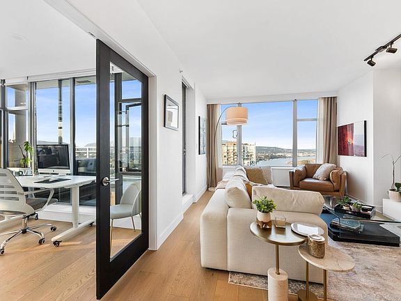 VIEWS, VIEWS, & MORE VIEWS. A $250,000 transformation of this SUB-PENTHOUSE home has created a sanctuary for the senses. This home has been thoroughly reimagined for comfort & effortless luxury. The bathrooms are spa-like retreats with floor-to-ceiling marble, wall-panel showers, heated tile floors, and a Jacuzzi tub. A built-in fireplace integrates with the TV and sound system for cozy evenings, while mornings begin at the dedicated coffee station for your daily espresso ritual. The redesigned primary closets offer a perfect fit for two wardrobes. The versatile den includes a convenient Murphy bed for guests. From your oversized deck, experience a quiet beauty with stunning sunrises and sunsets over a green canopy of Queen's Park and the Fraser River. Call today for your private viewing.