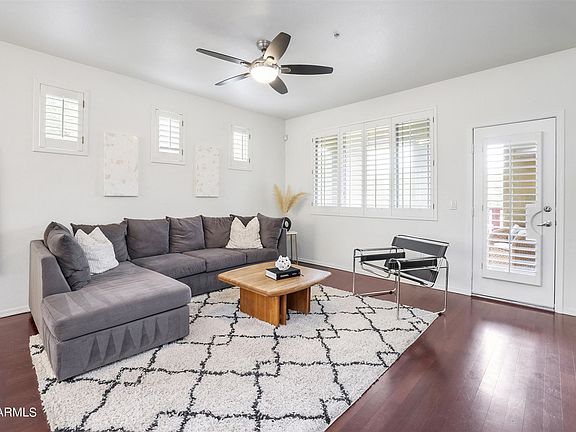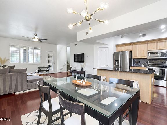 Beautifully upgraded condominium located approximately 1.5 miles from ASU, 1 block from Tempe Marketplace and Mesa Riverview and right next to the Chicago Cubs Spring Training Facility. This 3 story, 3 bedroom, 2.5 bathroom condo is 1 of 16 units with the unique and very desirable Giorgio Floor Plan. Unit 1285 is an end unit with only one common wall, which adds 9 additional windows for tons of natural light and an open floor plan that feels much larger than it's 1421 sq. ft. Situated poolside on the smaller of the two pools and with North/South exposure, this is the best location in the community! Additionally, this condo features many upgrades, including real wood plank flooring, brand new carpet on the stairs and upper level, granite countertops and slate backsplash, beautiful upgraded