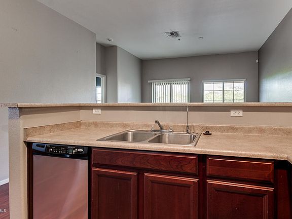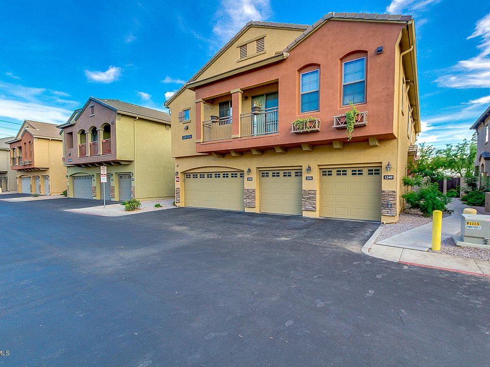 Welcome to Villagio. Desired 2 bed 2 bath split floor plan with an open concept great room. This townhome has it all. Full inside laundry room, huge walk in pantry, upgraded cabinetry with stainless steel appliances, and a private balcony. Original owner. Hand picked end unit positioned with N/S exposure and directly across from a grassy area for your dog. Attached 1 car garage with direct entry. This gated community sits in a perfect location. Just minutes to ASU, Tempe Market Place, Light Rail, shops and restaurants, Mesa Riverview, Chicago Cubs MLB Spring Training Facility, and Tempe Town Lake. Easy access to the 101 202 and 60 freeways. This is a must see!!