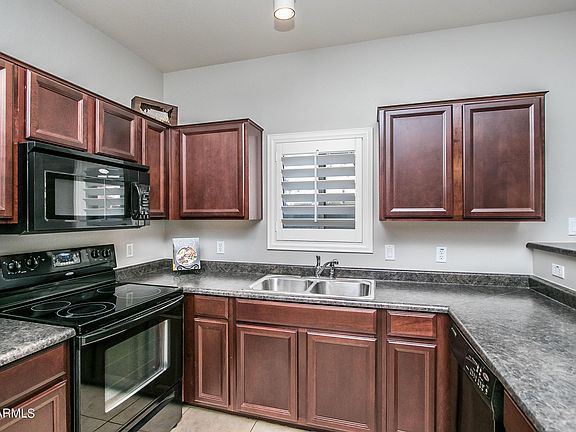 Darling End unit with ground level patio. Freshly painted top-to-bottom. 2 master bedrooms upstairs with ensuite bathrooms and both with walk-in closets. Upstairs laundry area/closet and 1/2 bath downstairs. Gorgeous upgraded cabinets, walk-in pantry and breakfast bar. One car garage with direct access. Multiple community pools, spa and gazebos on the grounds. This is a great gated community with close distance to Tempe Market place, ASU campus, World Series Champions Chicago Cubs spring training and quick access to 202 & 101 Freeway. Perfect lock & leave or live in full time. Ready for new owners.