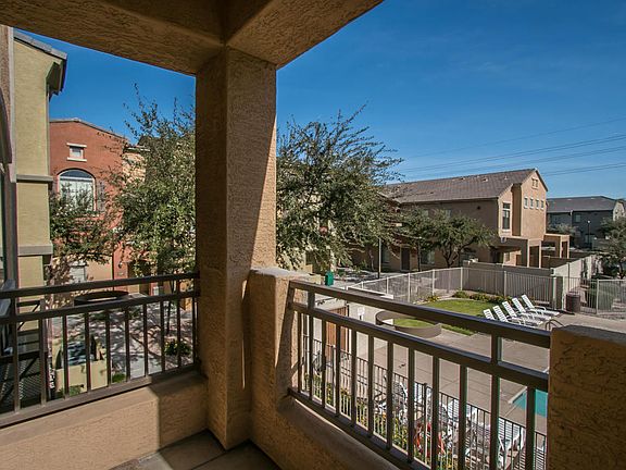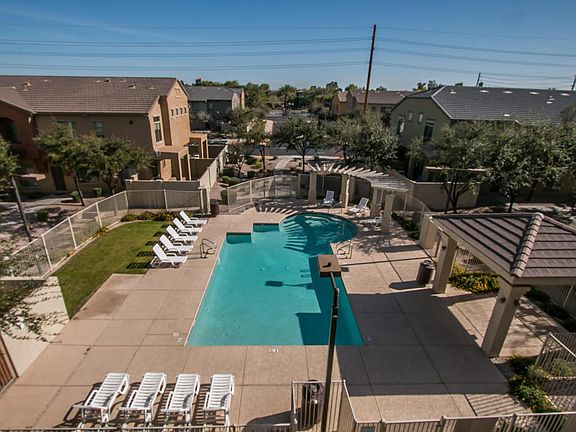 Beautiful 3 story, 4 bedroom, 4 bathroom townhome steps away from pool with two car garage. First floor offers one master bedroom en suite and 2 car garage. Second floor features beautiful dark wood flooring, upgraded fixtures, large open kitchen, huge pantry and half bath. Top floor offers three carpeted bedrooms and two more baths with washer and dryer included. Across from Cubs park, close to freeways, ASU and two large shopping complexes