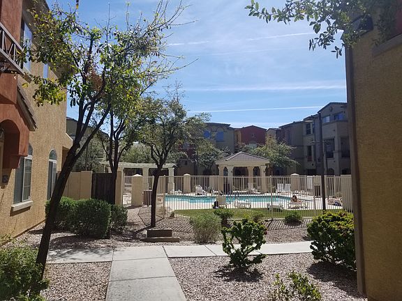 Located in the highly desirable Villagio at Tempe, this 3 bedroom + den & 2.5 bath townhome was loved and cared for by the owner and it shows! This beautiful unit is situated on the ground level, in one of the best locations of the entire community, with no buildings next to you for extra privacy, and just steps outside one of the community pools! The first level is simply gorgeous! Enter a spacious great room that opens to the kitchen & dining area, updated with gray wood tile flooring & fresh paint! Lots of natural lighting & windows adds to the open and airy feeling. The kitchen features upgraded white staggered cabinets with crown molding, decorative black iron cabinet pulls, quartz countertops, all stainless-steel appliances, undermount sink and a large island/breakfast bar w/cabinets