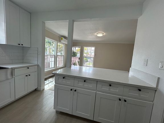 Welcome to this beautiful 1 bed 1 bath back end unit that has been remodeled to perfection. Open kitchen concept with a large and spacious living room area. New paint and flooring throughout, new kitchen with gorgeous countertops and tons of cabinetry. There is no shortage of natural light coming from the windows as well. Unit comes with a new stove and microwave. Laundry hook ups for your convivence, "MAJOR BONUS POINTS" Good size bedroom to boot. The bathroom is also remodeled and stylish. New curtain wall A/C unit has been added for year round heat and cool air. The whole unit has been upgraded that you will be proud to have friends and family over to show off. Located on a tree lined street, walking distance to markets, stores and close to major freeways. Be the first to move in to this beautiful unit at this great price. Owner pays water and trash. Tenant will be responsible for there own electricity, gas, internet etc. We do not charge application fees. Starting out at a one years lease. Street parking only.