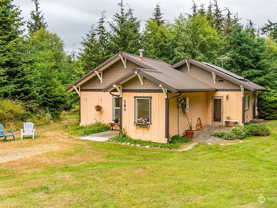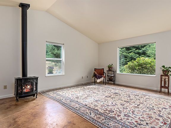 Country charm in this 2 bedroom home with contemporary touches like stained concrete floors, radiant heat, solar panels, and lovely wooden doors & closets. Perfect main floor living location, without stairs. Spacious cook's kitchen with adjacent dining area, island, lots of storage. The living room has a vaulted ceilings and a propane heat stove. 5 acres with mix of trees and clearings. Enjoy deer, eagles, songbirds and space for creating your own trails and garden areas. Lots of windows provide sunny living spaces. Just a few minutes to Coupeville town center, with grocery, hospital, schools, County offices and the historic waterfront district's shops, services and restaurants. About half an hour to NAS Whidbey. Come see soon!