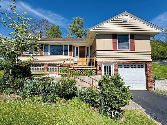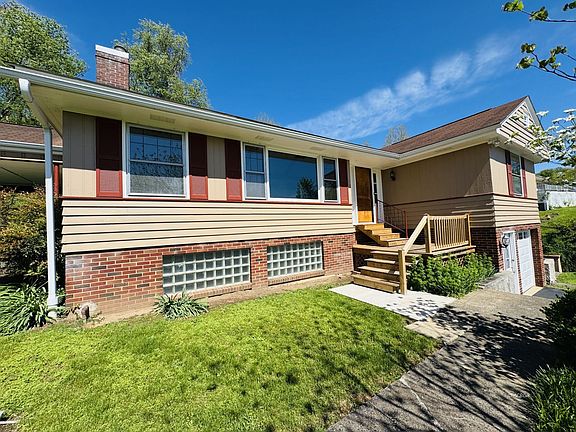 Tidy and Timeless with a Spectacular River-Valley View! Well kept minimal modern home with view. Find three bedrooms, main bath, living room, family room, and kitchen/breakfast nook on the main level. Other attractive features include original hardwood floors throughout, gorgeous maple casing/baseboards and decorative trim that showcases the vaulted ceiling, refurbished original Andersen windows, replacement six-panel doors, dining room with built-ins, kitchen with dishwasher, electric oven/range, garbage disposal and nearby breakfast nook, family room with cherry paneling, full/partially finished basement with W/D, "half" bath w/toilet and shower--utility sink just outside (front room has served as a fourth bedroom), and an asphalt driveway shared with only one neighbor. Attached garage is capable of storing two vehicles tandem-style and includes handy shelving for storage. It's the perfect time of year to enjoy the nicely landscaped lawn from the large covered patio (18x18) while soaking up the scenery. Other bonuses include a newer HVAC system (2014) and water heater (2018), updated plumbing, and fresh exterior paint. NOTE: home is being sold AS-IS.