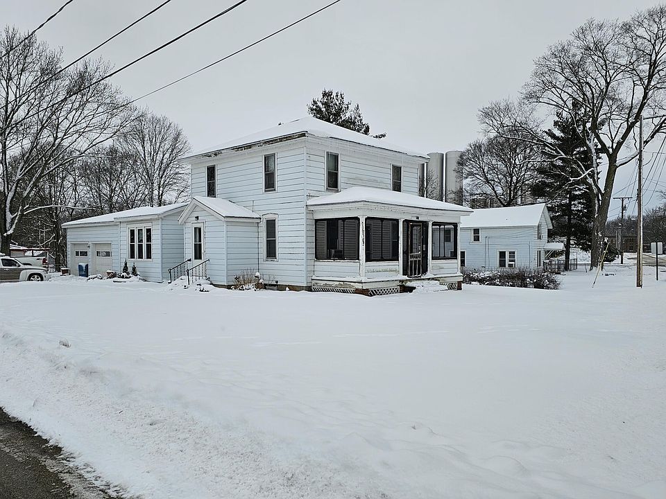 3 Brs 1.5 bath home on a double almost 1/2 acre lot. Main floor offers kitchen with laundry hook ups, Dining rm, spacious living rm, off front entrance, family rm area could be a bedroom. Upper level offers 3 bedrooms, and half bath. 2 car attached garage with storage above. Front and side porches.
