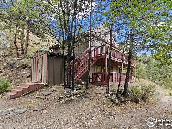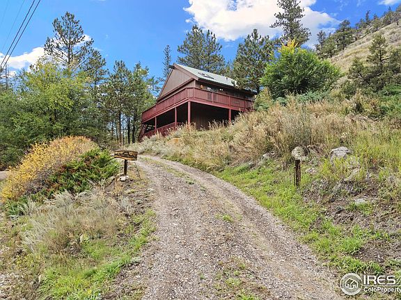 Charming mountain cabin on 2.61 acres which is located between Estes Park and Loveland off of Highway 43. Property backs to the National Forest. Well built 1977 cabin in "The Retreat" with 2 bedrooms and a loft (which can be used as a third bedroom). There are two nice bathrooms (one on the lower level and one on the main level). Main level ceilings are covered in beautiful wood. A quiet little stream across the road invites wildlife such as fox, coyotes, wild turkeys, elk, deer, and big horn sheep. You can enjoy watching the forest friends from your recently refinished wrap around decks off your upper as well as your lower level deck. Cabin has a metal roof, so you won't have to replace it again. Main level has a wood burning fireplace between the kitchen and living area, which keeps the home cozy warm. Main heat source comes from the electric baseboard heaters. Washer and Dryer are fairly new and they stay with the home. Sellers willing to part with most furnishings in the house, if you are interested. Property also has a 4 x 6 shed for all of your equipment and toys! You wont' find a sweeter cabin than this one! Don't wait to see it! This 2.16 acre site has it's own water well with plenty of gpm to support all your needs. Septic vault. Professional photos added by 10/8/25.