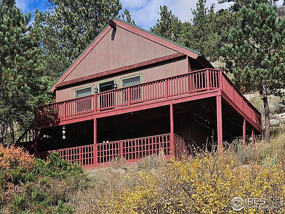 PRICE JUST LOWERED! Charming mountain cabin on 2.61 acres which is located between Estes Park and Loveland off of Highway 43. Property backs to the National Forest. Well built 1977 cabin with 2 bedrooms and a loft (which can be used as a third bedroom). There are two nice bathrooms (one on the lower level and one on the main level). Main level ceilings are covered in beautiful wood planks. A quiet little stream across the road invites wildlife such as fox, coyotes, wild turkeys, elk, deer, and big horn sheep. You can enjoy watching the forest friends from your recently refinished wrap around deck off your upper as well as a nice deck on your lower level. Cabin has a metal roof as well as a wood burning fireplace between the kitchen and living area, which keeps the home cozy warm. Main heat source comes from the electric baseboard heaters. Washer and Dryer are fairly new and they stay with the home. Sellers willing to part with most furnishings in the house, if you are interested. Property also has a 4 x 6 shed for all of your equipment and toys! You wont' find a sweeter cabin than this one! Don't wait to see it! This 2.16 acre site has it's own water well with plenty of gpm to support all your needs. Septic vault.