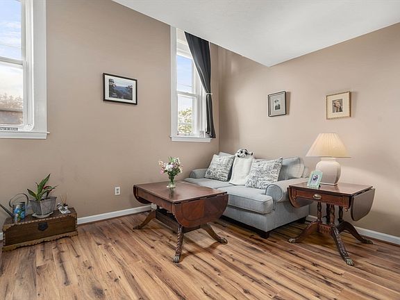 Charming exteriorCathedral ceilingsLarge windowsRecently painted interiorNew flooring