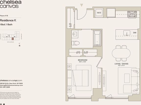 Experience the exceptional with carefully crafted amenities, including a club lounge with coworking spaces, a garden terrace, an expansive rooftop, and a fully-equipped fitness center. Located in the heart of Chelsea, Manhattan's most sought-after neighborhood, Chelsea Canvas offers endless discovery. Explore galleries, museums, and dining destinations. Wander the West Side and beyond with easy access to the A,C,E and 1,2,3 subway stations, The High Line, and Moynihan Train Hall.
