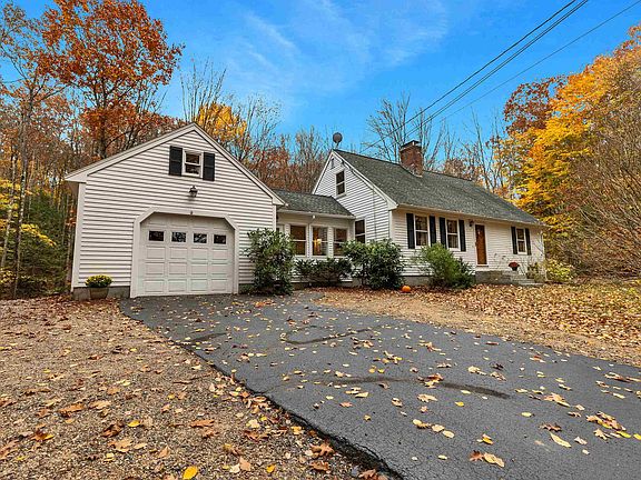 Located a mile from the roundabout in Goffstown Village near the High School with quick access to the highway and Manchester, this "Cream Puff" cape sits well off the road with nearly three acre for privacy. Entering the sunroom you are struck by the wall of windows ahead of you, giving the feeling of being outdoors while enjoying natural light and warmth. This room is on the central heating system but offers a second heat source for the chilly evenings ahead. The Kitchen/Dining Area is open to the Living Room for great lifestyle flexibility without the cook feeling isolated from the home activities. There is a full bath and two spacious bedrooms on this floor as well. There is hardwood and tile throughout the first floor. The second floor features two spacious front to back bedrooms with a full bath in between. The unfinished basement is home to the laundry and could be finished for more living space. The yard is a nature-lovers paradise with a grassy area sloping to a spring fed pond feeds a babbling brook as a border for the woods that buffer the property from the rest of the world. On the side yard is a great garden area. Meticulously maintained, this home is a joy to behold. Showing begin on Saturday 11/9 at the Open House.