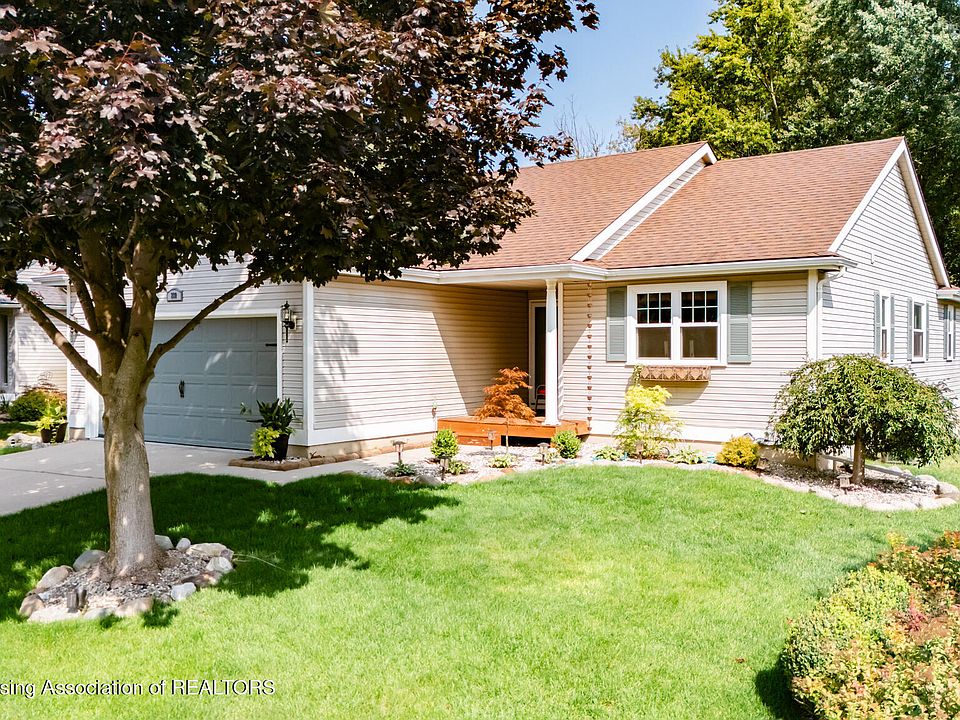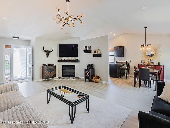 Step inside from the covered front porch to an immaculate open concept living space, bright with natural light! A tiled corner fireplace warms the living room, seamlessly flowing into the dining area with a sliding glass door to the spacious back deck - perfect for summer entertaining! The kitchen features granite countertops, stainless steel appliances and sleek dark cabinetry. The primary bedroom includes a walk-in closet and private en suite bathroom! Two additional bedrooms and an additional full bathroom complete the main level. The finished basement awaits your movie and games nights, complete with a half bath and space for a home office. Have peace of mind with newer mechanicals and windows, and all new flooring on the main level.