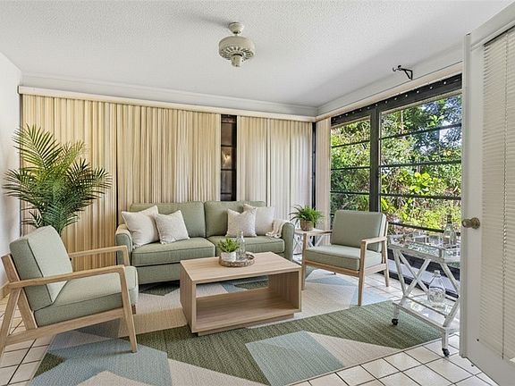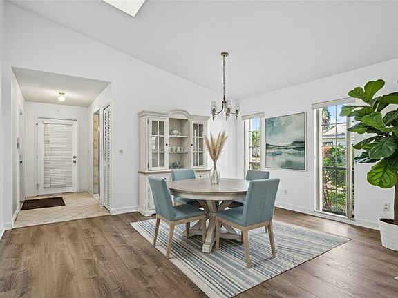Relaxing sunroomMetal roofSpacious corner lotDramatic vaulted ceilingsAccordion shuttersBrand-new lvp floorsNatural light