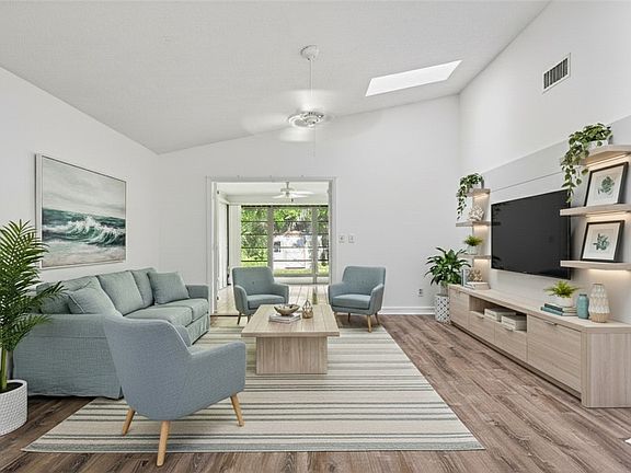 Nestled in the charming neighborhood of McAnsh Grove, in the heart of Vero Beach, you’ll find this adorable 3 BR, 2 BA, 2 CG, CBS home that offers a spacious corner lot and no HOA. Step inside to brand-new LVP floors and dramatic vaulted ceilings. Two sets of French doors lead to a relaxing sunroom, inviting you to unwind and soak in the natural light. Enjoy the peace of mind provided by accordion shutters, and the metal roof ensures durability and protection against the elements.