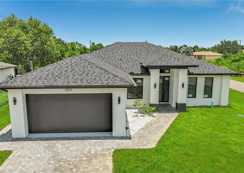 Introducing an exquisite new construction property that blends modern elegance with comfort, ideally situated on a desirable corner lot near State Road 82 and Sunshine Blvd. This stunning home boasts three spacious bedrooms plus a versatile den, perfect for a home office or guest room. Enjoy the luxury of two beautifully appointed baths and seamless tile flooring throughout, enhancing style and practicality. Step outside to your private lanai, ideal for relaxing or entertaining guests. The coffered ceiling and 9-foot doors add sophistication and grandeur. Thoughtfully designed closet cabinets offer ample storage, while the charming paver driveway completes this beautiful property. This gem awaits its new owner—don’t miss the chance to make it yours!