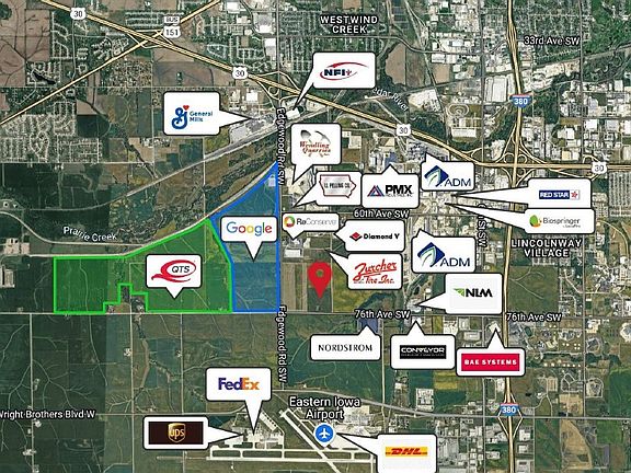 38.46 acres of General Industrial zoned ground at the NWC of 76th Ave & 26th Street SW. Utilities nearby, but not currently to the site. Located near the recently announced Google and QTS Data Center projects, and only a 5 minute drive to both Highway 30 and I-380.