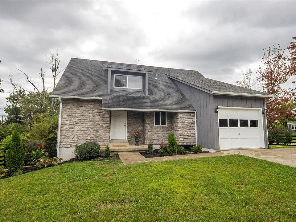 Adorable, Stone front Contemporary-MOVE-IN-ready! Charming 3 plank fencing adds character to the oversized corner lot. The open floorplan is perfect for mingling w/family & friends in your totally new white kitchen w/stainless appliances while they dine or cozy up by the stone fireplace in the vaulted greatroom! Walk out the new oversized deck & private backyard-perfect for bbq's, cornhole or a firepit gathering. The 1st flr Master has a BIG walk in closet & is connected to the bright new full bath. The 2nd bedrm on this flr is perfect for a nursery, aging loved one or kiddos. Upstairs you have a 2nd master w/huge walk in closet, another full remodeled bath & an open loft across the catwalk perfect for an office or playroom-etc. The tiled basement is great for hanging w/friends, game nights, sleep overs-etc. & the HUGE storage area in the unfinished side will keep all of your 'stuff'. Close to New Circle, Man O War, Downtown, UK, I-75 Owner/agent