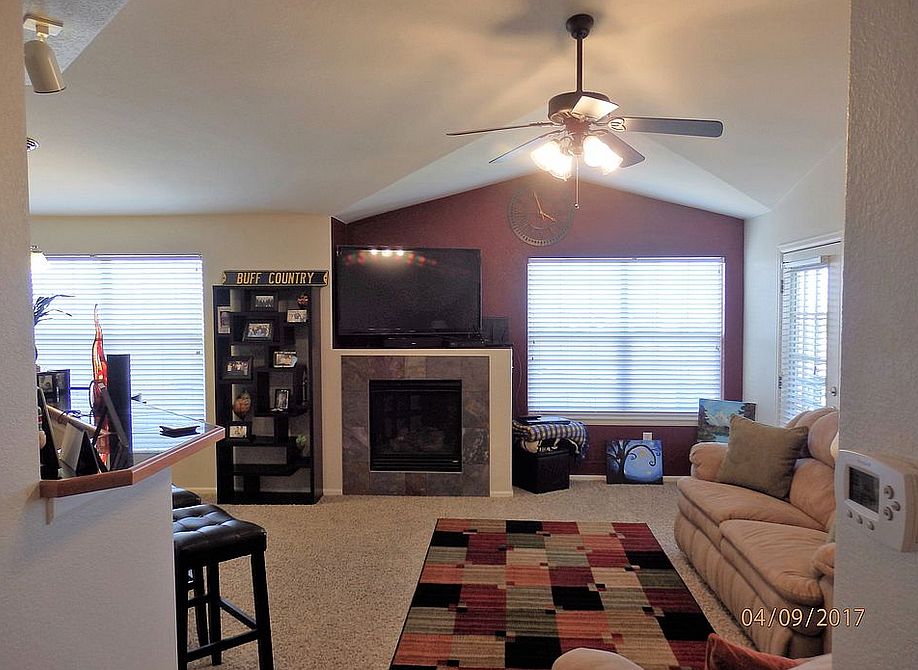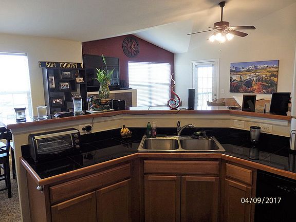 Vaulted ceilingsGranite countersKitchen barOpen floorplanCeiling fans