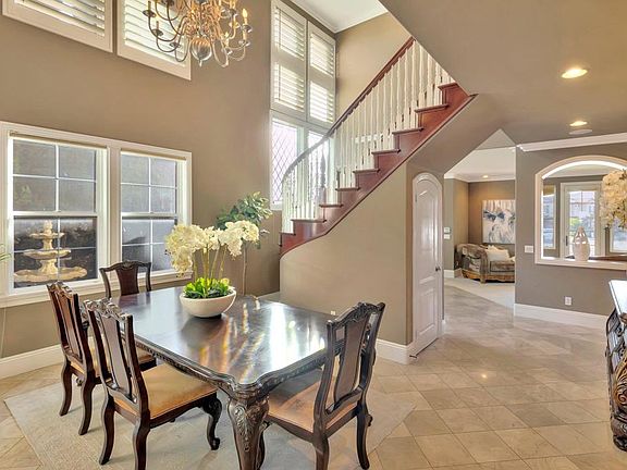 Classic home in Rolling Hills Ranch. Highly desired floor plan, including formal living room, formal dining room, family room, full bedroom en-suite downstairs with additional full bathroom and bedroom across the hall. Upstairs offers large primary suite with panoramic views and extra large dual door entry closet offers custom closet built ins, double vanity and huge soaker-tub. Generous sized front bedroom with oversized walk-in closet with custom built ins for storage. Adjacent bedroom currently featured as a game room including stunning library book shelves and yes more custom built ins. Other extras include brand new carpet, countless custom upgrades such as crown molding, wains coating, media built ins, leaded glass windows, frosted bar-ware cabinet, vaulted ceiling, new upstairs AC, security system and surround sound audio - Exterior rear features fire pit, two covered patios, dining space, VIEWS, VIEWS, VIEWS, lounging area, roomy side yard that would make an ample dog run - Two car garage with long drive way for extra parking- garage includes floor epoxy and several storage cabinets - Low HOA includes access to FIVE!! private gated community pools -No MELLO TAXES!