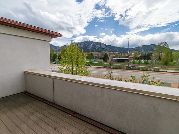 Don't miss out on this terrific condo located right next to campus. You'll love this unit's massive deck that faces the Flatironsperfect for BBQs and entertaining guests. Not only does this condo come with huge bedrooms, granite counters, stainless steel appliances, wood flooring, high ceilings, and an in-unit washer and dryer, but it also boasts 3 reserved garage spaces, elevator access, and additional storage.Zoned: 4 unrelated occupants. Rental License: RHL2015-00606.