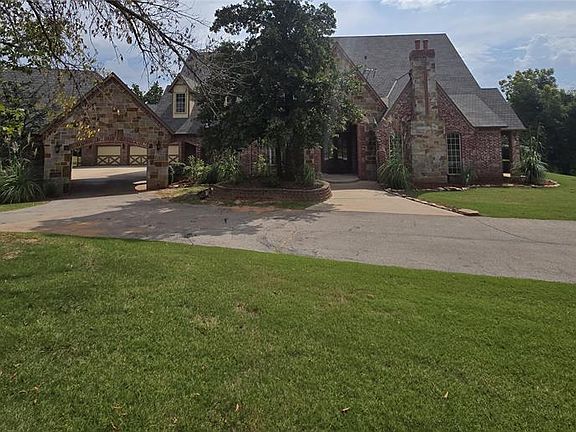 Lavish, OKC mansion! Gated entry. 6,184 sq ft(mol) situated on 7 acres(mol). Quick access to I-35, I-235 & downtown OKC. Amazing grand foyer featuring an impressive winding staircase. Two(2) master suites! 4 or 5 bedrooms, 5 1/2 bathrooms, 3 living areas, formal dining room plus a 5 car garage & portico. This home also features a gourmet kitchen with loads of counter top space, island with seating, stainless appliances plus an abundance of storage space. Great outdoor space including an inground pool, expansive open patio area plus a large covered patio with built-in grill and service bar. Other exterior features include wrought iron fencing, a circle driveway, natural waterfall, hiking trails, plus more. All nestled amongst 7(mol) beautiful & serene acres.