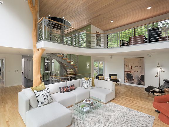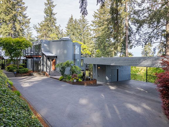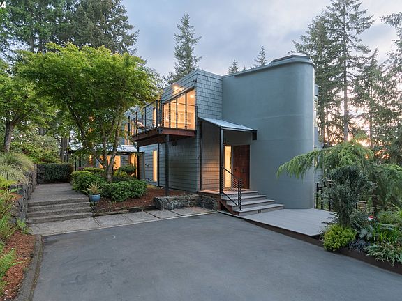 Welcome to your modern oasis nestled amidst the lush tranquility of nature, just moments away from the vibrant pulse of the University of Oregon. This stunning estate evokes art as architecture and offers a harmonious blend of contemporary design, panoramic views, and the serene beauty of its natural and private surroundings. The sleek lines of the minimalist architecture captivate the eye while floor-to-ceiling windows invite abundant natural light to flood the posh interior, providing uninterrupted vistas across Eugene, with iconic Hayward Field, Matthew Knight Arena, and Autzen Stadium framed perfectly in the foreground. Living is effortless in the open-concept design that seamlessly merges indoors and out. The airy ambiance is accentuated by art gallery walls and hardwood floors, creating an inviting atmosphere for every facet of life. The dynamic floor plan is spacious, yet efficient, and is easily accessible via its artisan wood and metal staircases and further enhanced by a circular glass elevator to serve all three floors. This property has recently been thoughtfully enhanced and modernized, from systems to finishes, assuring enjoyment for years to come. All new composite and metal decks, new flooring, fully updated primary suite and lounge, and the list goes on! Sited on just over 1 acre abutting Hendrick's Park, the meticulously landscaped grounds beckon you to explore, with pathways that lead to a large yard and gardens or direct access to the adjacent park, where acres of greenery await your exploration. Conveniently located near the University of Oregon, this modern masterpiece offers the perfect balance of urban convenience and natural serenity. Whether you're strolling through the park, attending a university event, or simply enjoying the comforts of home, this is a place where every day feels like a retreat. Luxury is not just a price point, it is an experience!