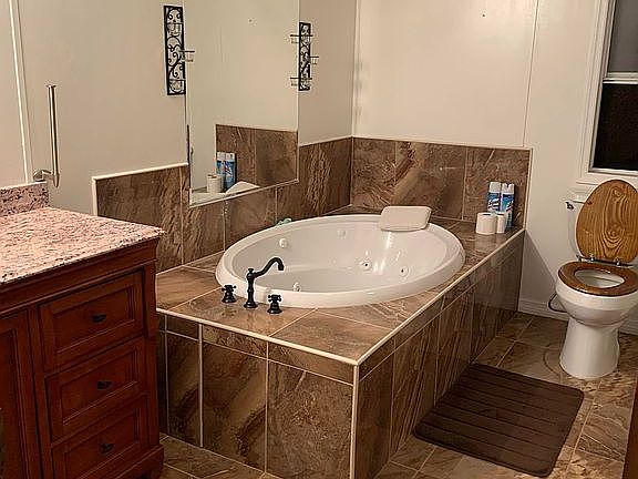 Age restricted community. Must be accepted by HOA. Spacious home with new appliances. New luxury vinyl floor. Great corner lot with plenty of indoor and outdoor entertaining. Available semi furnished. Huge master bedroom with two on suite baths one with a shower and one with a jacuzzi tub. Huge walk-in closet. Renter pays for electric and internet. No smoking in home or will be fined. Strict no street or grass parking. Active adult community, approval by office needed.