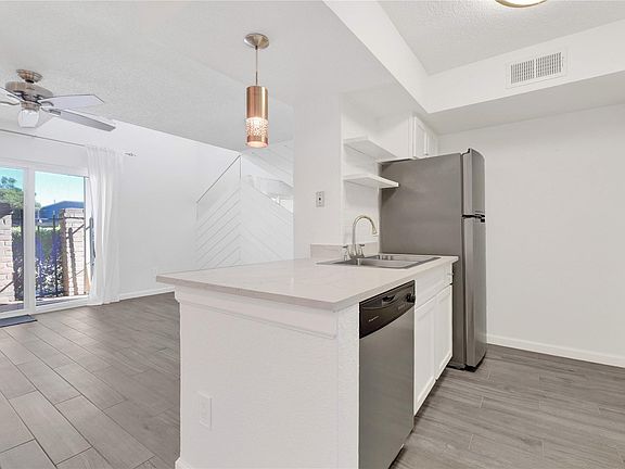 Wow! The next best thing to New Construction is Fully renovated & updated AT A GREAT RENT RATE! Welcome Home to this 2 Story Townhouse Style, 1 Bedroom, 1 1/2 Bath WITH Patio AND Balcony! No Neighbors Above or Below you & lots of room to sit & enjoy Both Outdoor Patio Areas for a morning cup of Coffee or an evening glass of Wine or Tea! This Beautifully Remodeled Rental Home Sweet Home includes Updated: Grey Hardwood looking Porcelain Tile Floors Down & Berber Carpet Up, Updated White Cabinets & Drawers, Full Size Washer, Dryer & Fridge Included (Front Loaders), Updated Bathrooms & Kitchen, Updated Appliances, Fresh Paint, Updated Light Fixtures & Quartz Countertops - SO BEAUTIFUL & READY FOR YOU TO CALL HOME & decorate for the upcoming holidays! A/C Replaced in 2022 makes it more energy efficient, too! One Orleans Place is well maintained Gated Community just a couple miles West of the Galleria & conveniently located to most major Houston freeways & airports! Water, Trash, Included!