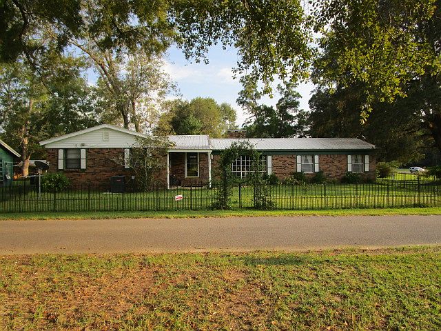 Welcome home to a warm open kitchen, oak cabinets, split brick floors, all appliances remain including washer/dryer & small freezer. Step down into the large den with a fireplace. Large back porch with a swing, large workshop, circle drive, wrought iron fence in front yard. On corner of Hwy 63 and Lee Pierce Road in East Central School District.