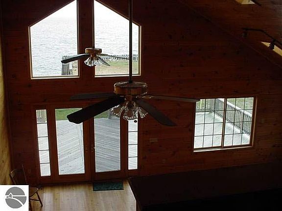 WHAT A FANTASTIC VIEW! ALL WINDOWS ON FRONT OF HOME TO ENJOY THE PANORAMIC VIEW. OPEN FLOOR PLAN, KNOTTY PINE CATHEDRAL CEILINGS, STONE FIREPLACE, PLUS SANDY BEACH AREA WITH A GENTLE SLOPE TO THE WATER.