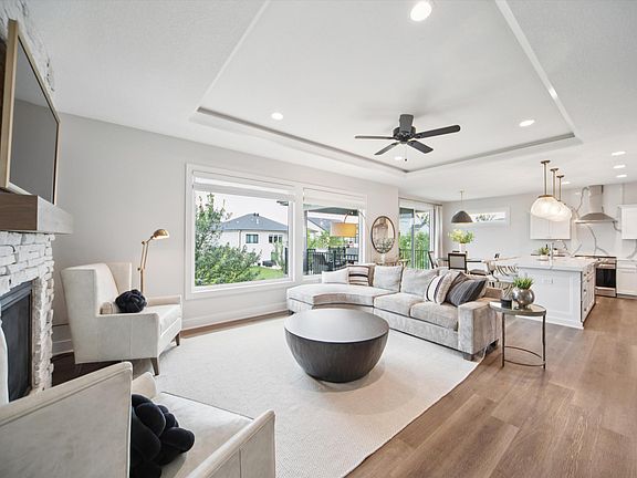 Stacked stone fireplaceHot tubOpen-concept floor planGold accentsGenerous walk-in closetStylish full wet barWell-landscaped fully fenced backyard
