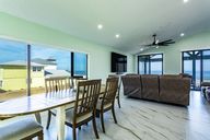 Gas fireplaceModern lighting fixturesOceanfront homeQuartz countertopsCeiling fansOpen-concept layoutBrick pavers