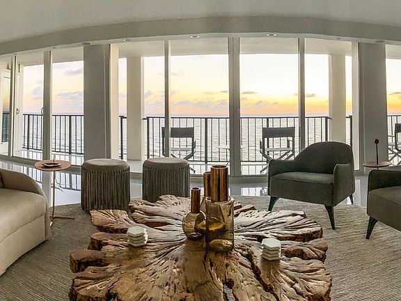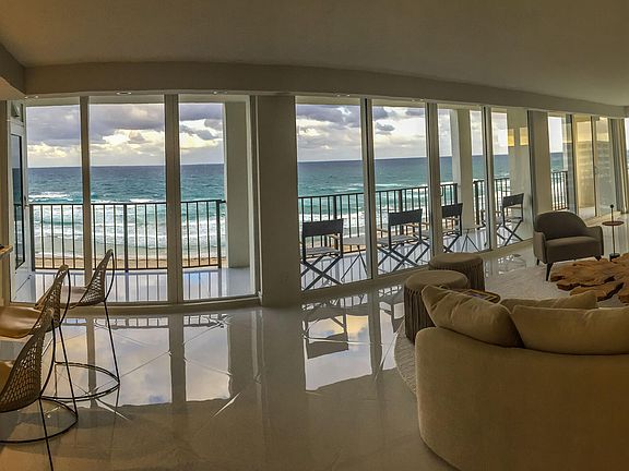 If you dream of ocean-front living with magnificent views of the Atlantic Ocean, sandy beaches, sunrises and sunsets then you'll truly love living in this gorgeous, completely renovated southeast corner apartment! Enjoy unobstructed spectacular vistas to the north, east, south and west through floor-to-ceiling impact-resistant windows and doors, from the large private wrap-around SE balcony and from the private west-facing sunset balcony. This 3 bedroom 2 1/2 bath 7th floor 2,135 sq. ft. contemporary apartment has porcelain tile floors, custom-made cabinetry, quartzite kitchen and bath counter tops, Wolf, Sub-Zero and other fine appliances, Hunter Douglas electric shades, recessed lighting, a sound system with built-in speakers and volume controls in every room and so much more! SEE MORE! Picture you, your family and friends entering your apartment through the semi-private elevator vestibule and being thrilled when you see the large family room, dining area, kitchen and kitchenette which are surrounded by breath-taking views of the Atlantic Ocean, pristine beaches and the spectacular Florida sky. As you walk south to the end of the family room you'll come to the private primary bedroom suite with custom-built walk-in and personal closets and a large bathroom featuring dual sinks, separate shower and spa/soaking tub. In the north wing of the apartment you'll find a second private ensuite bedroom with custom closet, spacious bathroom and a pocket privacy door. Nearby is a large third bedroom (which can be used as a den) with custom closet and easy access to the powder room. Ownership includes two garage parking spaces near the elevator and the advantages of 24/7 lobby, garage and key fob security, private access paths to the ocean beach with beach attendants who will set up beach chairs and umbrellas for you; two heated swimming pools, covered and open pool patios with seating and umbrellas, a fitness center with ocean views and lush colorful landscaping surrounding the impressive twin buildings of Ocean Towers.