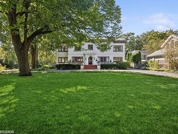 Stunning Mediterranean Villa nestled close to the water (see attached drone video) on over half an acre of land (approx 149'x176') in a superior location on the sought after block of Sheridan Place in Northeast Evanston! An elegant landmark home with exquisite details and fine craftsmanship throughout. The private expansive yard with lush gardens provides a serene and secluded environment perfect for play and entertainment. The seamless indoor and outdoor living is ideal for those looking to explore and enjoy all year round! This home features include, a large terra-cotta front porch, three sun kissed terraces, serene sunrooms, expansive windows that bathe each room in lots of warm natural light, and fine details like built-in bookcases and stunning dental moldings that add a touch of sophistication. Picturesque front door entry opens to the inviting living room with a cozy fireplace and an adjoining sunroom with southern facing terrace access. The dining room, ideal for hosting gatherings, leads into a well-appointed kitchen with granite countertops, white cabinetry, ample workspace, a breakfast bar, and a casual dining area. The original pantry storage, along with a coffee and wine bar, add convenience and character. The adjacent family room, with its own fireplace, provides a comfortable space for relaxation and connection. The first-floor home office, showcasing arched doorways and abundant natural light offers access to both a raised terrace and a serene patio below. A stylish powder room and convenient mudroom complete the first level. The original etched glass windows are a special standout feature on your way to the 2nd floor. The primary suite offers a quiet retreat with a spacious layout, a wall of built-in closets, and a versatile sunroom that could serve as a private lounge or an office. Across the hall, two additional bedrooms share a bright, window filled sunroom, perfect for use as an art room, playroom, or study. The updated hall bath boasts a double vanity and a walk-in shower. For added privacy, two more bedrooms and a full bathroom are tucked away, making it an ideal setup for guests or an au pair. The basement is finished with a great recreation/2nd family room plus a home gym! Rounding out this incredible home is a unique drive-thru 2 car garage and extra parking for 10 or more cars. Great location - Walk to Orrington elementary school, Baker Demonstration School, Lighthouse Beach, Gilson Park/Beach, Northwestern University and Purple line EL. Easy access to Sheridan Rd and downtown Chicago. Dedicated a historic Landmark, this house is rich in history. Built in 1914 by Louis Heppach, co-founder of Tyler & Hippach Glass Co., and his wife Jean, a survivor of the 1912 Titanic. With its private expansive yard and seamless indoor and outdoor spaces this is a one-of-a-kind residence - truly a special place to love where you live!    Property being moved to private listing network