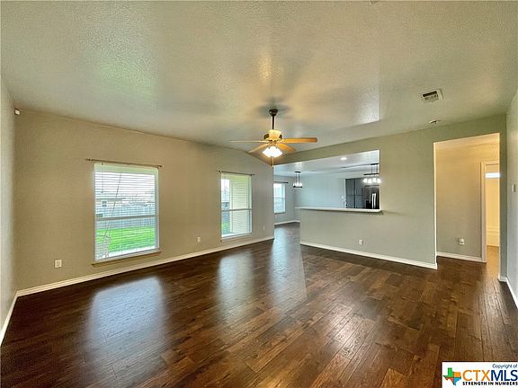 Upgrades galore! This beautiful home is settled in the highly coveted Goodnight Ranch community and has tons to offer! Beautiful laminate flooring, quartz countertops, an adaptable island, new, upgraded light fixtures, and fresh paint on the kitchen cabinets are just a handful of features this home presents. Add to it a serene backyard and a wood privacy fence, and it's perfect for cooking out or relaxing after a long day! This home is vacant and ready for the holidays!