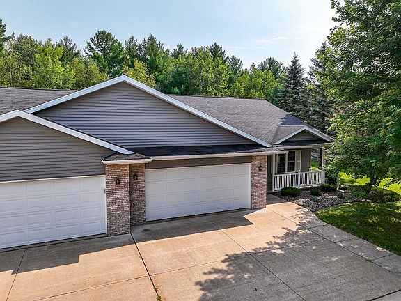 Condo in Merrill nestled on the outskirts of town, bordered by a large wooded area owned by the condo association. Spacious main level featuring two bed and three full baths. Main level primary bedroom, attached bath and walk-in closet. Main level laundry and plenty of closet space on the main level. Open kitchen complete with a built-in hutch, and plenty of cabinet space. Four-season sunroom is a highlight of this property, offering a bright, inviting space to relax and enjoy the picturesque views of the wooded backyard. Deck area awaits, perfect for barbecues or enjoying your morning coffee. The finished basement adds even more living space with a cozy rec room featuring a gas fireplace, ideal for relaxing or hosting game nights. This level also includes a den, additional storage, and another full bath. Two-car attached garage and a convenient backup generator.