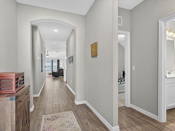 Discover your dream home at 2800 Tobias Lane, Aubrey, TX! This beautifully upgraded 1,912 sqft Pulte home, nestled in the highly desirable Denton ISD Braswell Zone, offers 4 bedrooms and 2 well appointed bathrooms, perfect for families or those seeking extra space. The open-concept design creates a seamless flow between the living, dining, and kitchen areas, ideal for both entertaining and everyday living. The gourmet kitchen is a chef’s delight, featuring a 5-burner gas stove, abundant cabinetry, and a large island for meal prep or casual gatherings. Adjacent to the living area, a convenient office nook provides a dedicated space for remote work or study, adding to the home’s versatility.