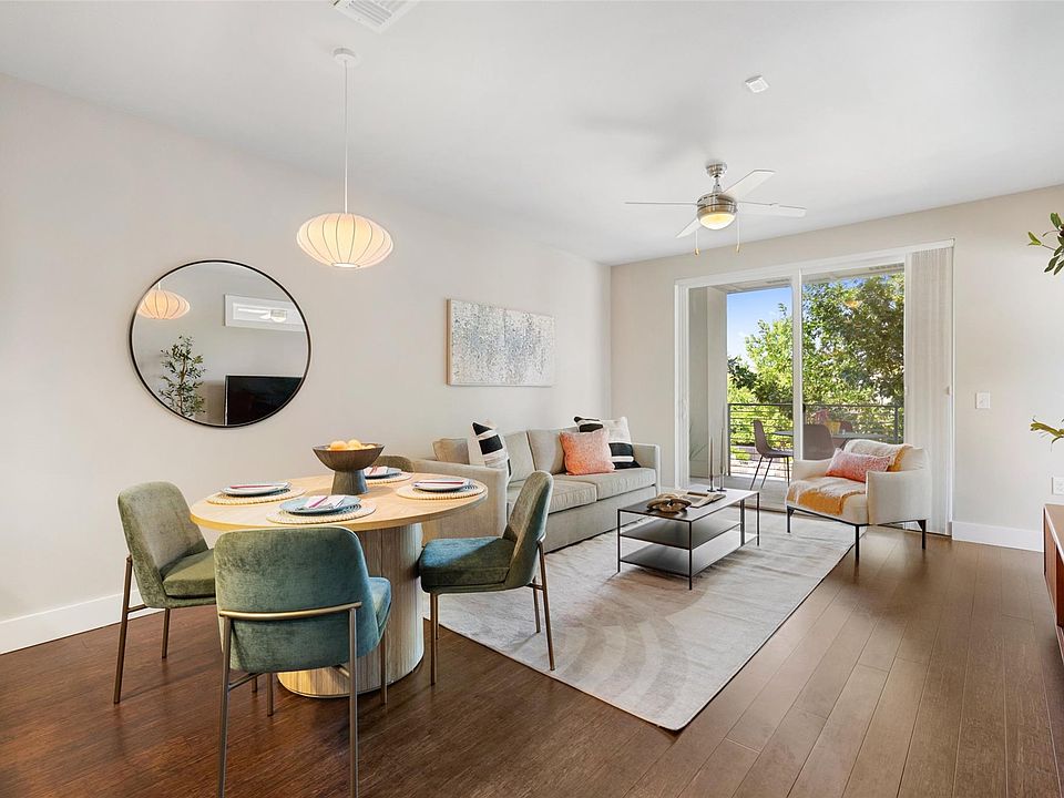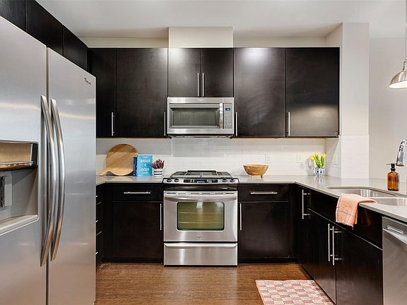 Private patioHardwood floorsStainless steel appliancesBuilt-in desk areaGray quartz countersNatural lightWhite quartz counters